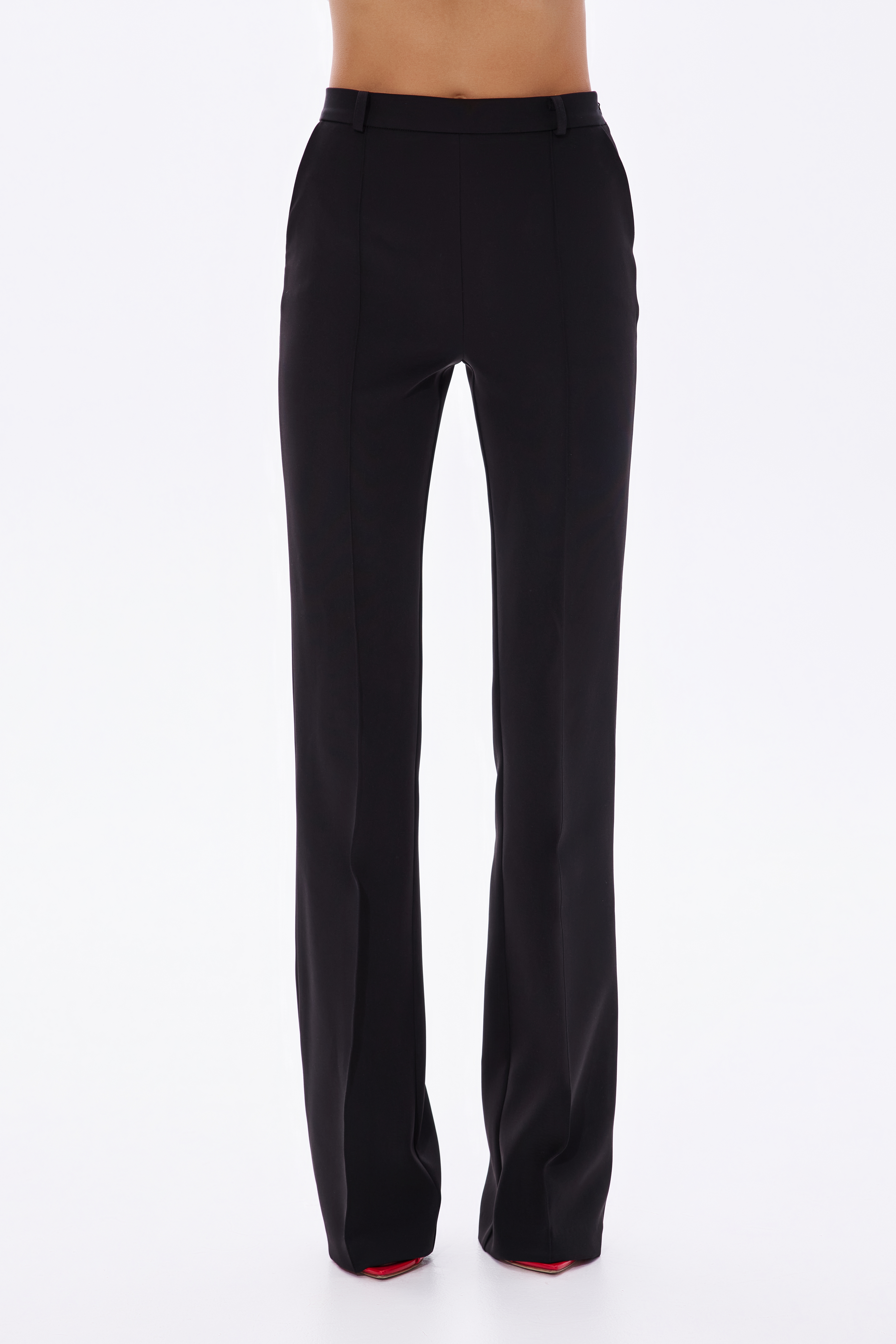 Лаконичные брюки прямого силуэта из плотной костюмной ткани. Модель с высокой посадкой подчёркивает линию талии и визуально вытягивает силуэт. Идеально сочетаются с базовыми рубашками, жакетами и блузами. Благодаря точному крою и элегантной линии брюк — это универсальная основа гардероба на каждый день.