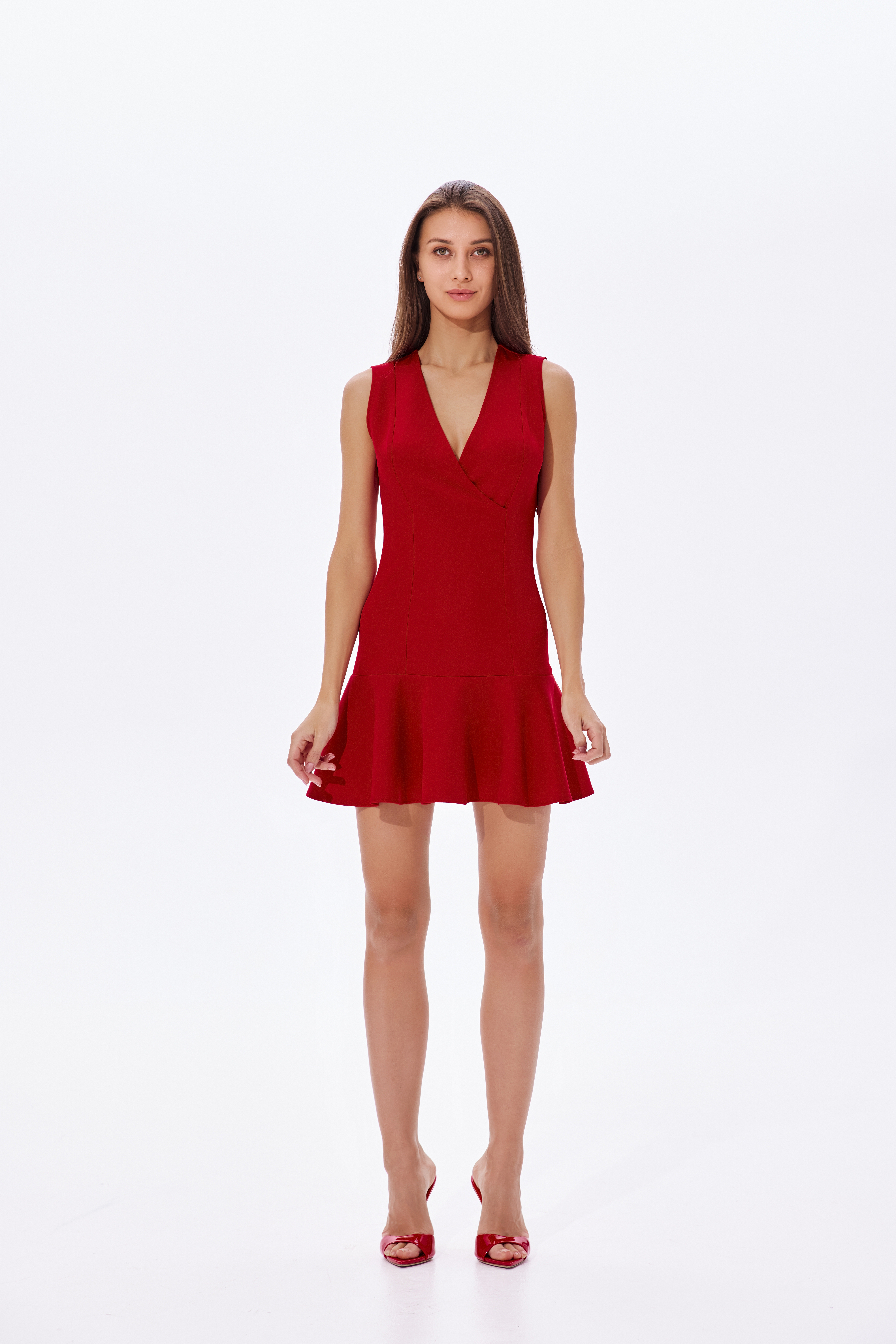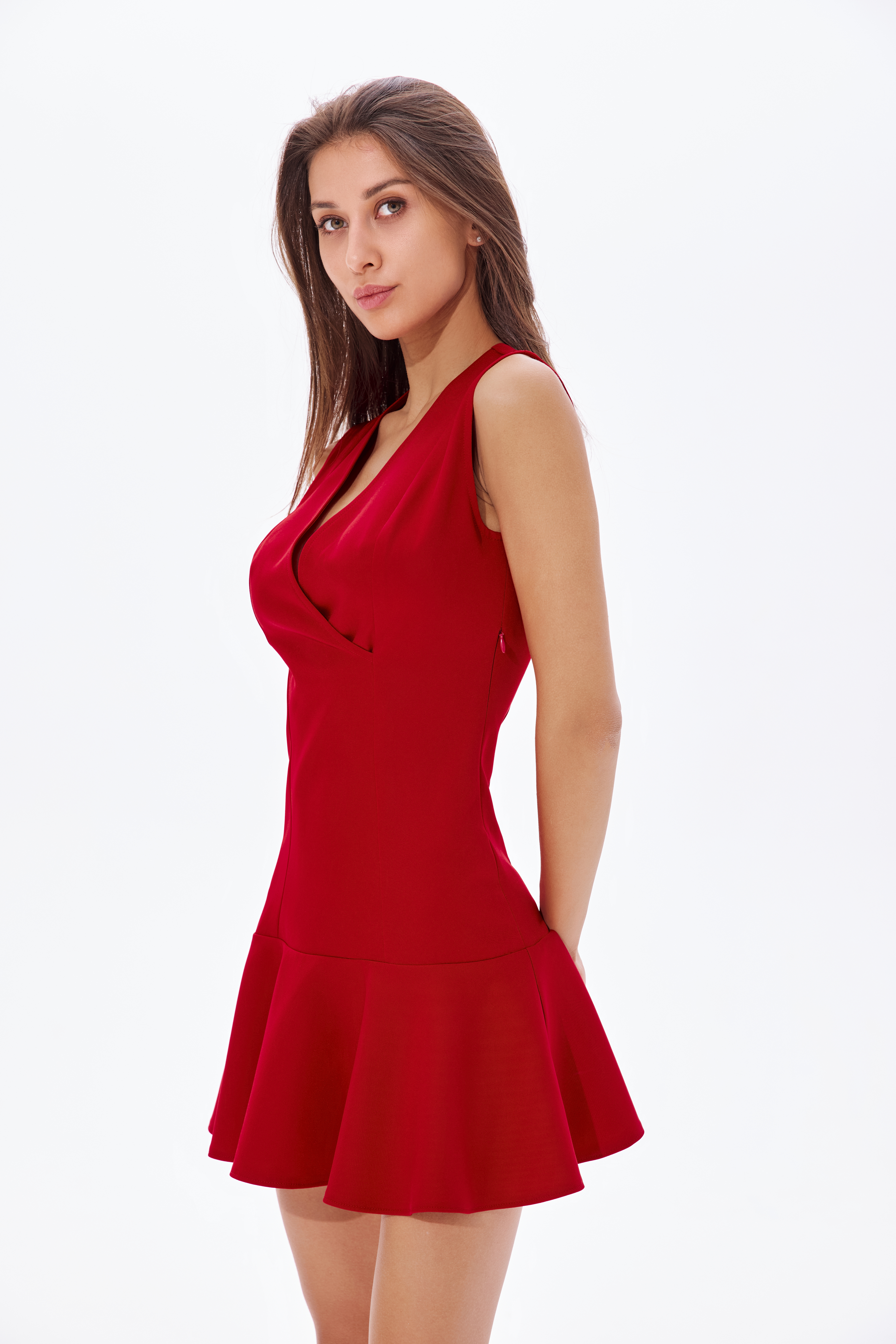 Красное мини-платье с глубоким вырезом